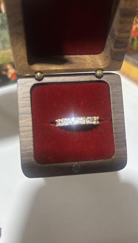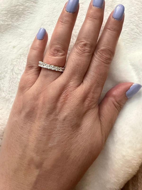 I didn’t expect the ring to be so sparkling ✨ and beautiful. I always wanted an eternity band and couldn’t decide which one, but this ring is delicate and the CZ pieces are a good size and makes the whole setting perfect. Recommend 100%