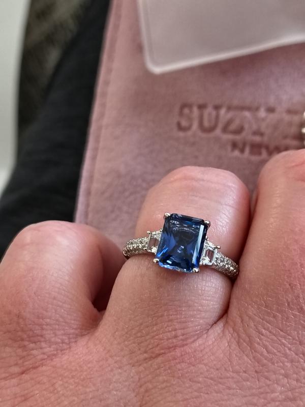 Suzy Levian New YorkSuzy Levian Sterling Silver Sapphire & Created White Sapphire Emerald Cut Proposal Ring