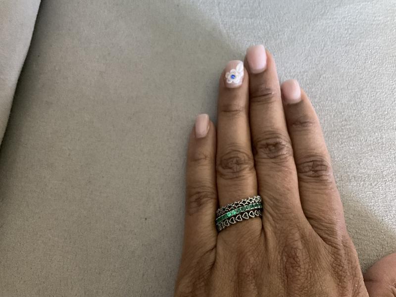 I have always wanted a ring like this and I’m so happy at how pretty and beautiful it is. I got two white rings (second one is different white Suzy Levian ring) to wear stacked. Loving the combo.