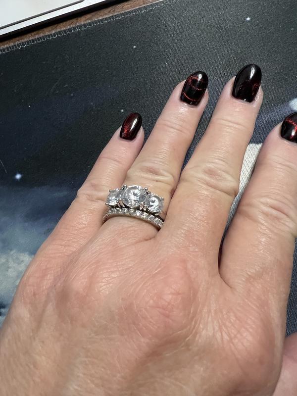 Looks perfect with me 3-stone diamond engagement ring! I couldn't be happier!