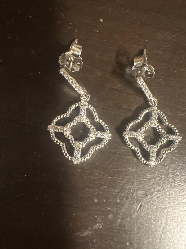 Suzy Levian Sterling Silver White Cubic Zirconia Trellis Filigree Drop Dangle Earrings