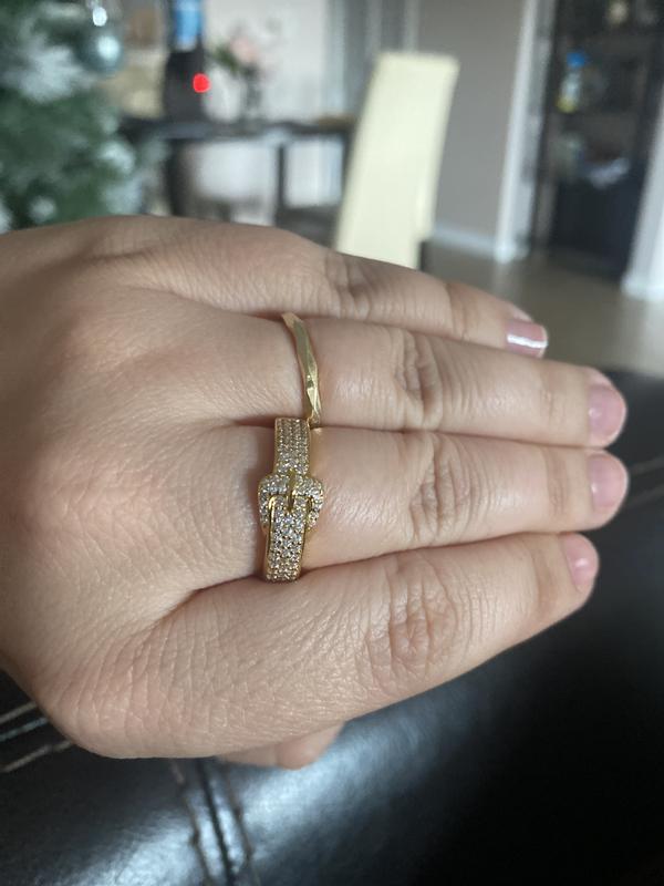 Suzy Levian Sterling Silver Cubic Zirconia Pave Belt Buckle Ring (7 mm)