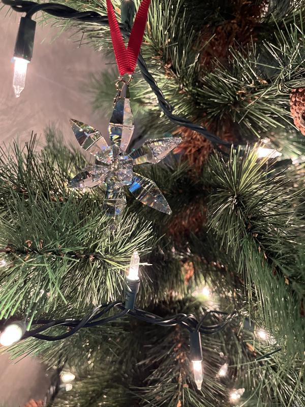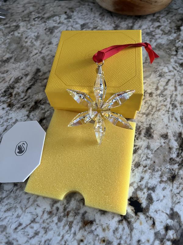 Pretty ornament. Different than Swarovski sells in their stores. First one I received in the mail had parts that arrived unglued. I thought the Swarovski store would send it back to be reglued, but they told me to return it to Macys and get another. Not sure if Swarovski will reglue these ornaments when they are several years old if they become unglued.