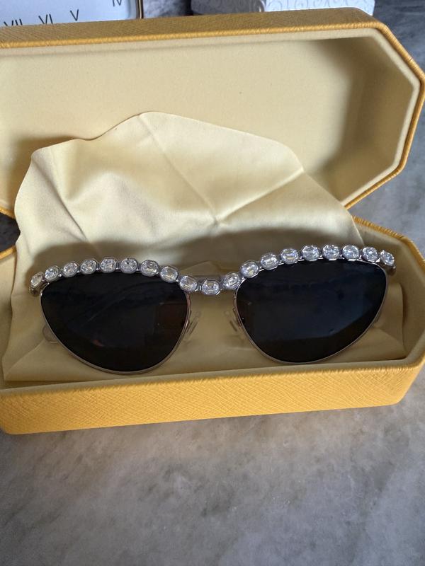 Web ID: 21062876Introducing Swarovski SK7030 sunglasses, a perfect embodiment of style and sophistication. Featuring a gold metal frame with strass on metal temples paired with solid violet lenses, these exquisite shades exude elegance. The iconic cat-eye shape adds an extra touch of glamour to the overall design. Elevate your look with these exquisite pieces that effortlessly blend timeless allure and contemporary flair.