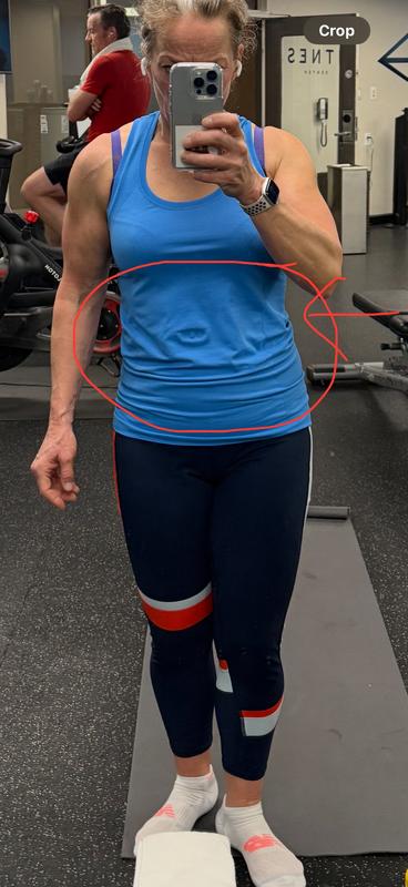 Love the top aside from the very bottom of it as it has a tighter section around the hem of the vest which i feel is unnecessary and less flattering than other vests i own. Not enough reason to return it but it has stopped me buying more in other colours.