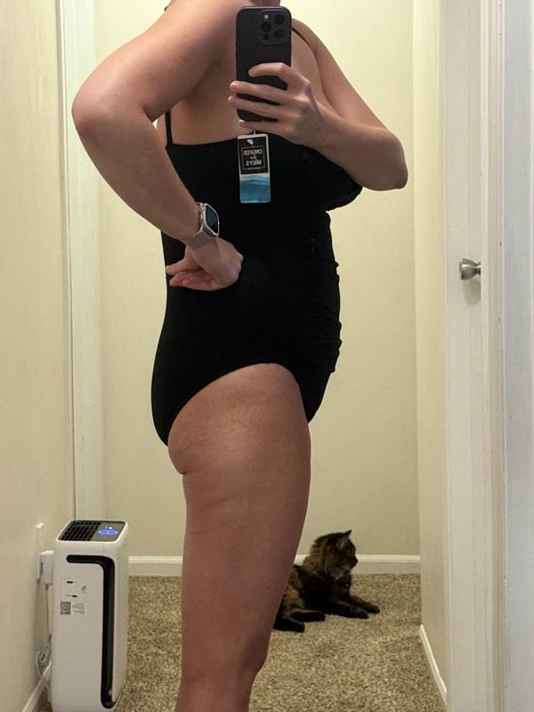 The Swim Solutions Twist Bra shirred Mio was a perfect fit. I really liked the rousing around the stomach areas, it held me “in where it was supposed to “ if you know what I mean. The addition of added padding to the chest area provided a layer of extra protection and I never worried about exposing to much cleavage. The adjustable shoulder traps were perfect. I really liked how quickly the suit dried once I was out of the water.