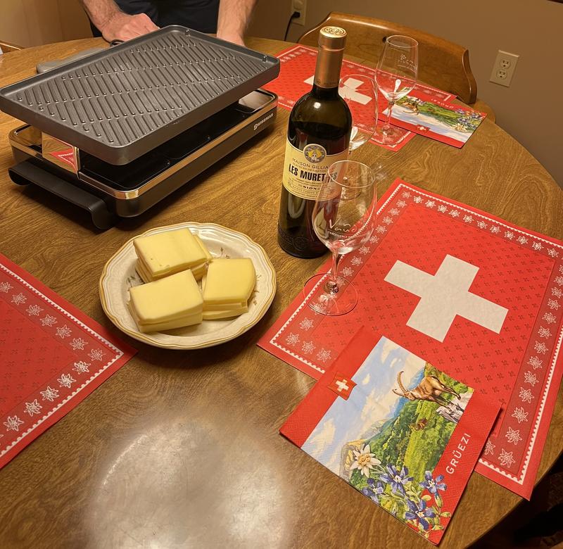 This is a delicious, social way to eat dinner and it’s fun for small get togethers or family dinners. I love this Swissmar raclette. It works wonderfully, Heat’s up quickly and stays consistent throughout. Having the flat griddle on one side and the grill on the other makes this great for crepes or omelettes or grilled meats and veggies. This is very simple to use and there really are no rules - just pour melted cheese over anything that strikes your fancy.