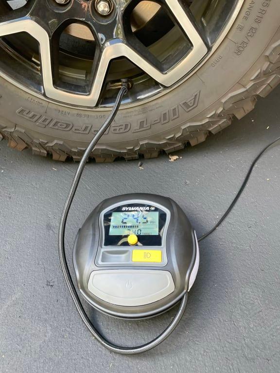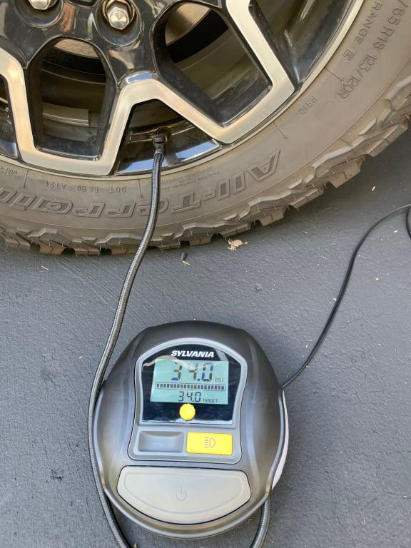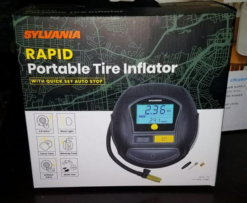 This isn't your run of the mill tire inflator. Compared to what you find in the trunk of your car Sylvania really pulled out all the stops to add features to their Rapid Portable Tire Inflator. From a digital screen to automatic shutoff, I'm quite impressed with what Sylvania has done with this. *Note: I was provided a free sample in order to conduct a review, though this does not affect my opinion of the device itself. Design: 4.8 out of 5 Very well thought out design, I was quite impressed. On the top you have a large screen and a power button, with a knob that adjusts the pressure you want to set the inflator to. Click the knob in to switch between different measures such as PSI, kPa, and BAR. Other than that you have a button to turn on a light, which can come in handy at night. The back is where I was thoroughly impressed, however. On the back of the inflator you have a cutout for various tips, including one for sports balls, presta valve bike tires, and a nozzle for toys. It's powered with a "cigarette-style" 12V plug, which is good for universality though it would've been cool to have a regular outlet plug since I have that in my vehicle as well. But the best part is that the cord winds into the machine itself, making it VERY easy to keep in one piece. There's a little knob that flips over to turn the crank and wind up the power cord, and the air hose has a cubby as well. I can't tell you how many times I've had issues winding up the cord on other vehicles' inflators, which looked super ugly and were a pain to put back. If i were to nit-pick on design, I'd say the materials were a bit meh, just the plastic makes it feel a bit cheap but the price is right. Features: 5 out of 5 Out of the line of tire inflators Sylvania has, this one is the fastest, with a 3.5min inflation on regular tires from 0 to 35 PSI. Even on my Bronco's larger off-road tires I was able to inflate from 25 to 34 PSI in about 2.5min which is pretty good, and even usable for inflating tires after an off-road excursion in a pinch since it can stay on and working for up to 15min which is nice. Being able to fill bike tires, balls and toys is an added bonus, though I didn't try out these features. The screen is really nice and easy to read, and it's really cool to just set a value to inflate to since there's no guess work. Lastly the built-in gauge is pretty accurate, it inflated to 34 PSI as I asked and that matched my handheld gauge that I keep in the car along with the vehicle built-in gauge. Overall I find the feature set to be perfect for the price point. Packaging: 4 out of 5 The package is super simple and very snugly fits the inflator and the few accessories that come with it. It also comes with gloves and some tire caps which is nice I suppose, though I didn't really think of either as something that I'd be super worried about needing when I have a flat or need to fill a tire. The overall device is a bit on the large side so while the packaging is nice it doesn't fit as well in the small spaces of my 2-door bronco, which is really the only big fault I have with this inflator. Conclusion: 4.5 out of 5 I really like this inflator, I will definitely have it in my vehicle as a backup. The design is clean and simple, the features are robust, and the inflation time is good for what it's made to do. If you're looking for an inflator that does it all I highly recommend it. I would definitely buy it if given the chance.