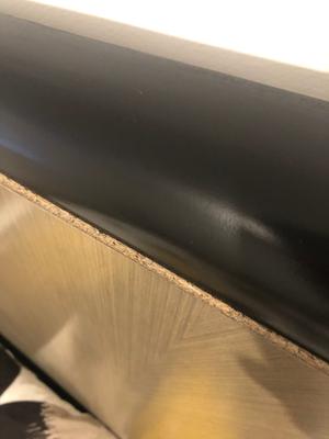 This bed is green - not grey. Do not be deceived by the color in the gorgeous pic Macy’s posted. In addition, the headboard began to come apart a few days after its arrival. And the footboard has a missing panel. Macy’s says it’s supposed to be that way (see pics below). Also note that if you call to discuss or if they call you, expect to be on hold at least 20 minutes.