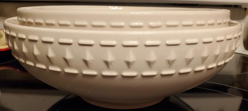 These serving bowls are a great addition to our kitchenware. They are a beautiful porcelain white and have a beautiful design on them. If you want to impress your guests, then I definitely recommend these serving bowls.
