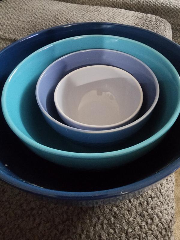 This ser of three bowls was a great addition to my kitchen, they are made well and look great. I love the 3 sizes. The smallest one is great for my daughter's cereal in the morning, and I've used the larger ones for mixing ingredients and serving dishes