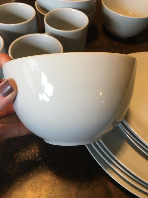 I ordered 4 boxes of this dish wear because I needed 16 place settings. One bowl was cracked in half in one of the boxes. When I called customer service to exchange the box I was told it was no longer available. I was offered a discount but that doesn’t get me the replacement bowl. I am very disappointed.