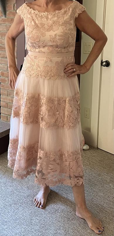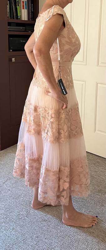 This dress is beautiful. The design is unique. The color blush was too pale for me as it washed me out due to my skin and hair color. If the dress was offered in another color, I definately would have order it.