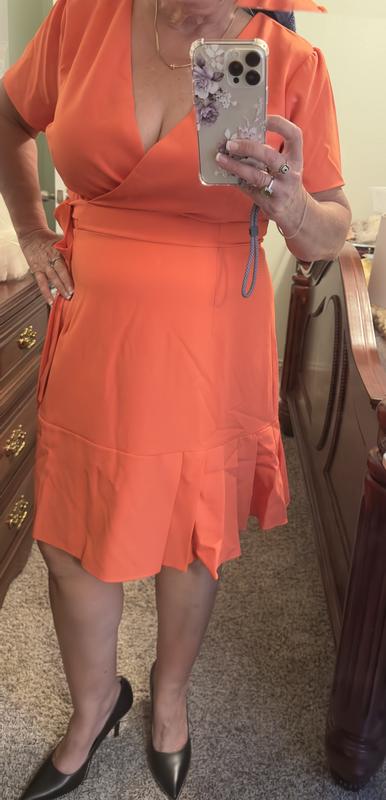 Tahari ASLWomen's Faux-Wrap Pleated-Hem Dress