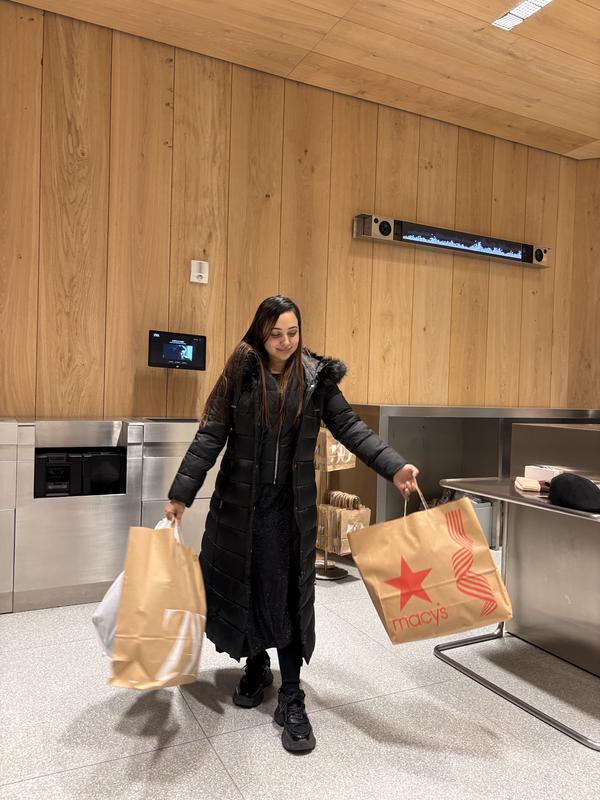 It's a beautiful and warm coat. True to size. Bought size S - I'm 5'3 & 135lbs I bought it online but it had zipper issue. I was able to return it and Macy replaced it. As of now very satisfied with the coat.