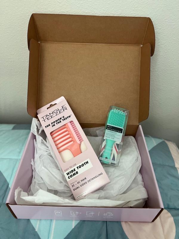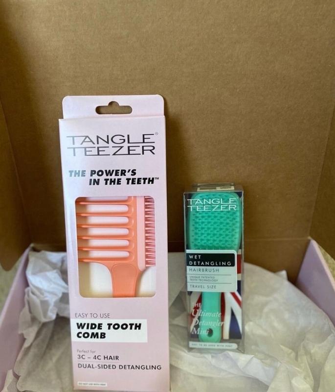 The brush is great, really practical as it is small and fits anywhere. Works great in curly hair. Also good with hair that has been styled to get the knots out