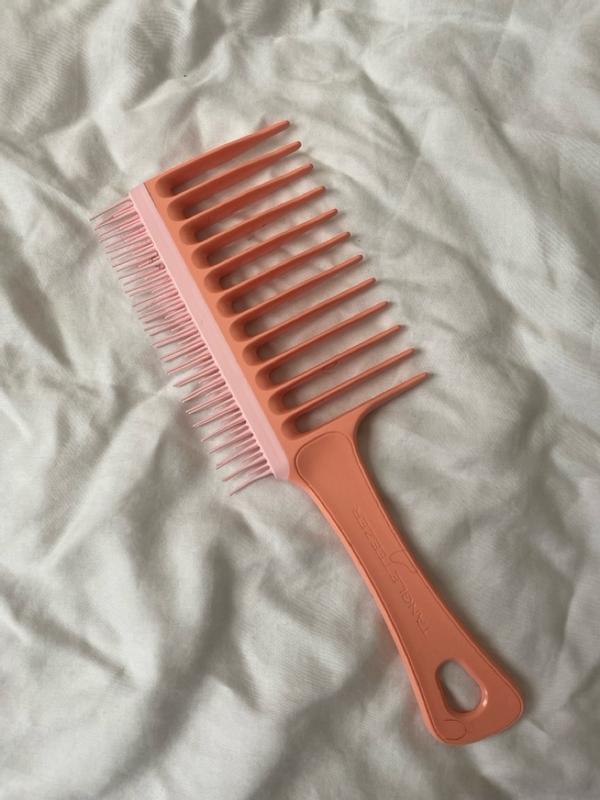 This has become a staple in my hair care. The wide tooth comes in handy when deranging my hair. It’s great that the comb also has a small brush section. The comb is extremely durable and has put in some serious work.