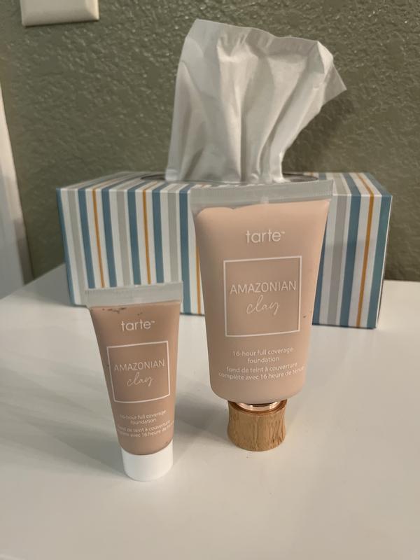 Coverage is perfect. I love getting special offers on Tarte. The sample color page is very accurate to the actual foundation color.