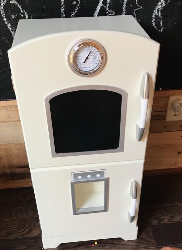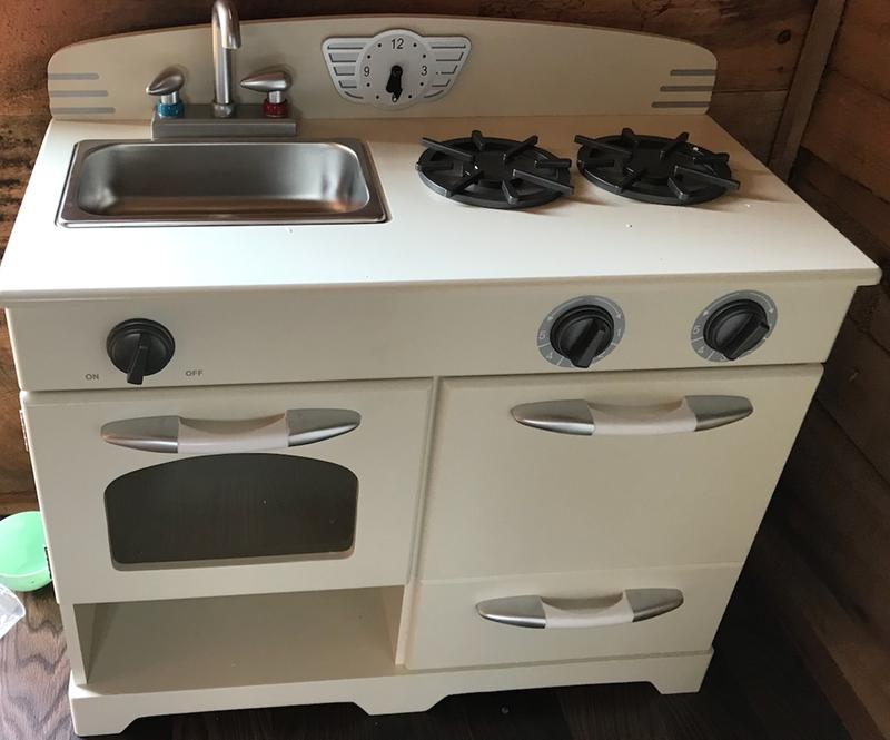 We used this to replace our big ugly plastic kitchen. It’s beautiful! We actually put it in our living room because it’s so pretty. My 15 month old slams the doors and this kitchen is showing zero stress from the abuse. My 6 year old, 4 year old, and 1 year old all really like playing with this together.