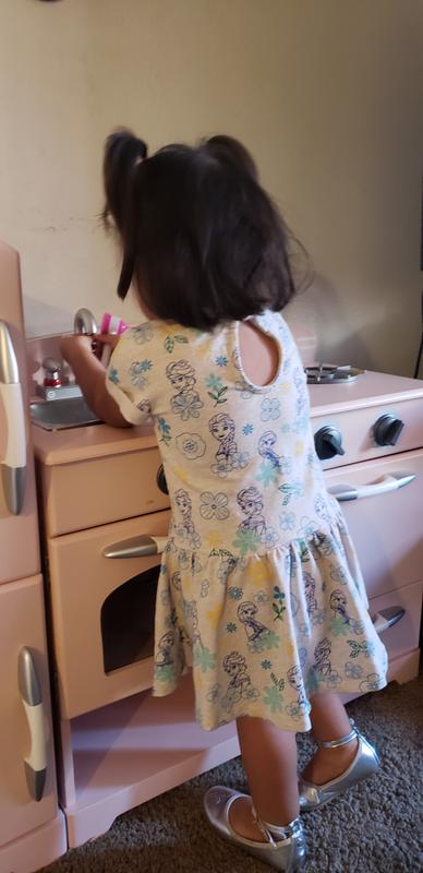 This thing is great. My 2 going on 3 year old loves this play kitchen. She spends hours a day playing on it. The product itself is great as well, looks very nice, sturdy, seems like it will hold up for a while. The light pink matches well w her room. We couldn’t be any happier.