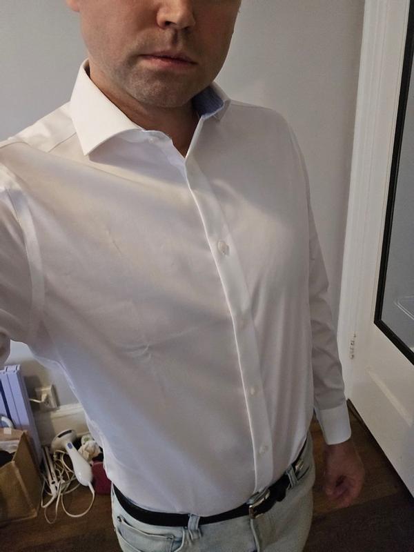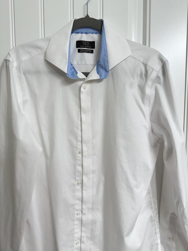 This Ted Baker Premium non-iron dress shirt is a solid choice for the office! The appearance is sharp and professional with that classic Ted Baker attention to detail. The fabric has a nice crisp look that stays polished throughout the day, and I really appreciate those subtle design touches that make it stand out from your average dress shirt. The slim fit is definitely tailored, which looks great if you’re into a modern, fitted silhouette. The shoulders fit spot on and the chest and waist are nicely trimmed. However, I have to mention that the length is kinda too long for short men. If you’re under 5’6” or so, you might find yourself having to tuck in a lot of extra fabric. Comfort wise, this shirt is very comfortable for a whole day work shirt. The premium cotton fabric feels good against the skin and breathes well, so I’m not feeling stuffy by afternoon. The non-iron feature is legit too. I can pull it from the dryer, give it a quick shake, and it’s good to go. Saves me so much time in the morning! Quality is where Ted Baker shows its premium positioning. The stitching is clean, the buttons feel substantial, and the collar holds its shape beautifully. The fabric has that nice weight to it that tells you it’s not going to feel cheap or flimsy. As for durability, these shirts hold up well over time. After multiple washes, the fabric maintains its look and the non-iron properties don’t fade. The collar stays crisp and the cuffs don’t show excessive wear. It’s definitely built to last through regular office wear.