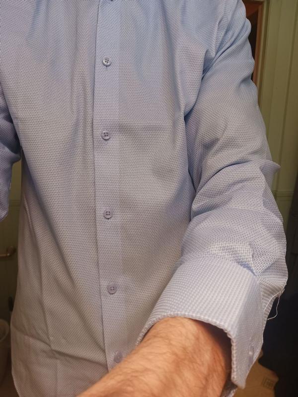 My husband and I were looking for a nice outfit for church & saw this shirt & loved it. He took a chance & didn't try it on at the store, but it fit him perfectly. Nice stretch and he said it was comfortable.