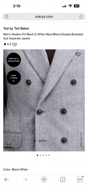 Men's Modern-Fit Black & White Wool-Blend Double-Breasted Suit Separate Jacket