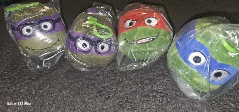 These were stuffed ninja turtle heads my grandson can hang on his backpacks