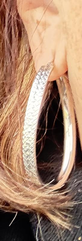 I purchased these wavy oval hoop earrings as a gift for someone who is very special to me. I am so pleased with the texturing of the design as it emphasizes that these are not just simple hoop earrings. The oval shape finishes off the the rich look of these earrings.