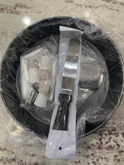First of all the ad is very misleading, the only thing you get is that little round pan spatula and all the little thingies to squeeze the frosting out, very disappointing I sent it back