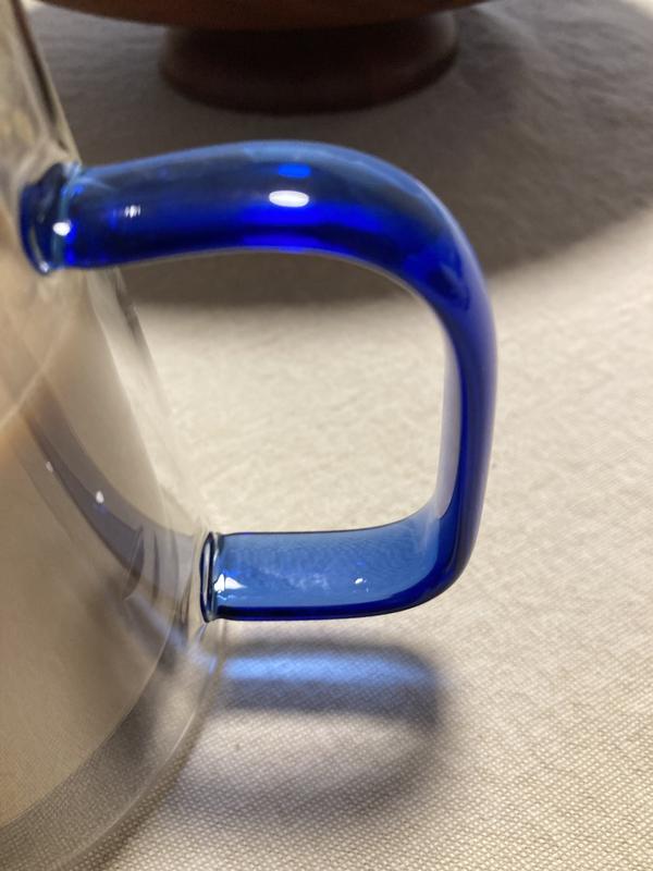 Beautiful coffee cup/mug, the perfect size for my morning cup of Joe, love how then added the blue handle my fav color, there well made quality material from cellar, they always made great stuff for the kitchen
