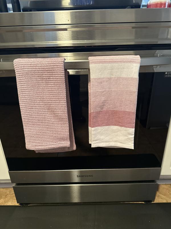 Arrived frayed & snagged. Their label says "reversible" well of course as towel is same color on both sides. Very thin material even for a kitchen towel.