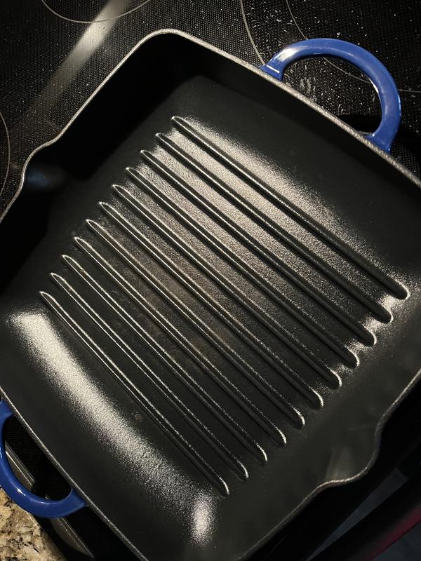 Exactly what I hoped to find after taking a culinary cooking class on using high heat. Bonus is the ceramic and cast iron. And Blue is my favorite color!