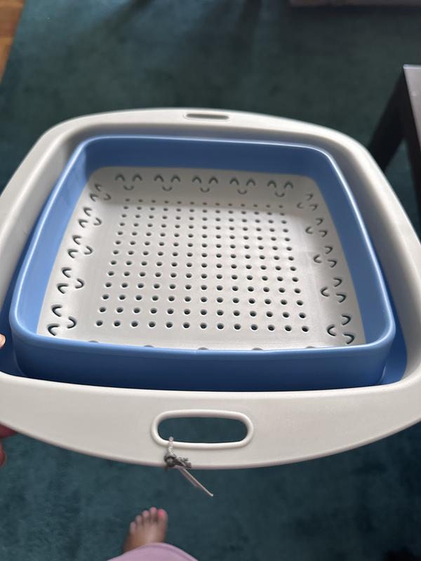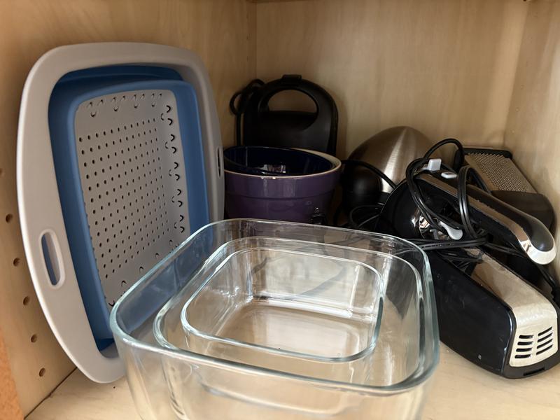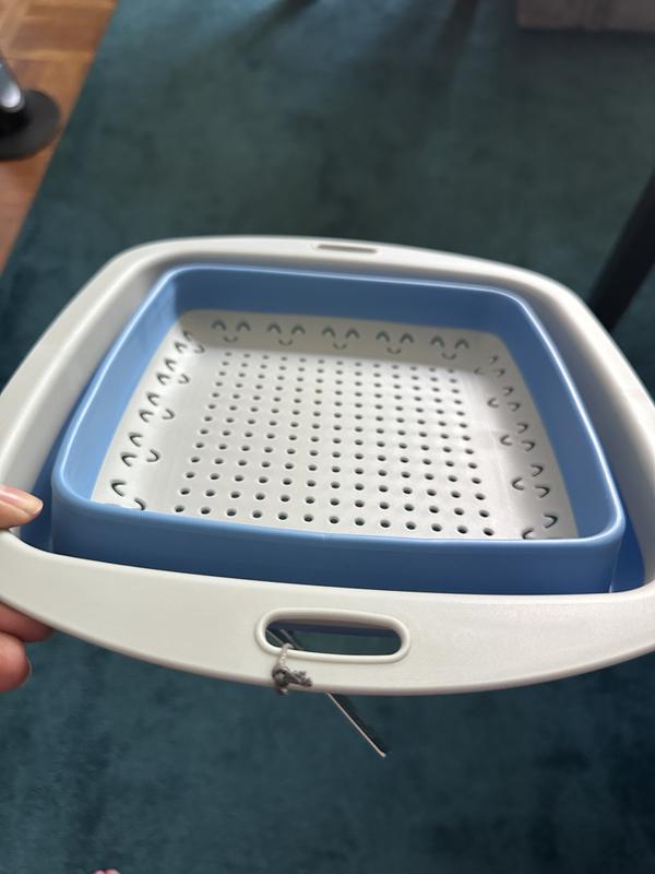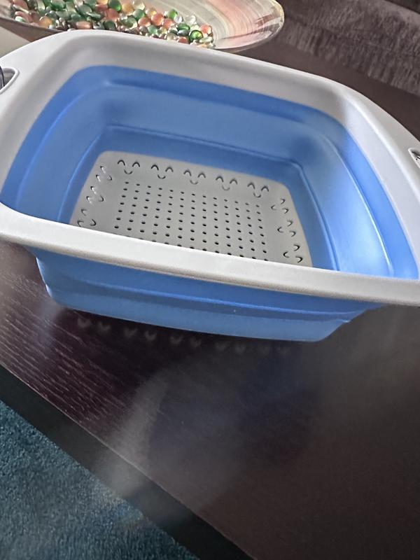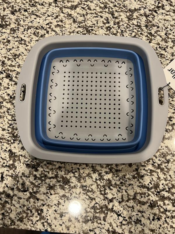 Very cute and convenient for washing pasta or veggies. This brightens up any dull kitchen drawer and makes storage more efficient. I like the way the product folds up and can be easily stored in a small apartment.