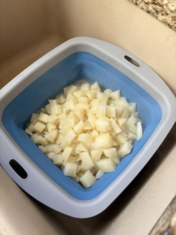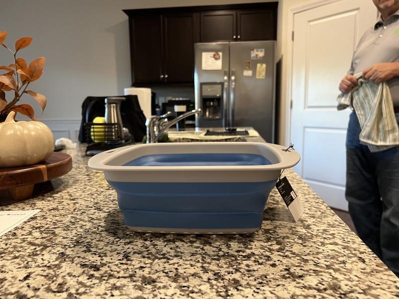 I love this colander. It’s the perfect size for small to large produce rinsing. The collapsible design makes it easy to store flat or on its side. The product is sturdy and easy to wash. Fits nicely in one’s sink.