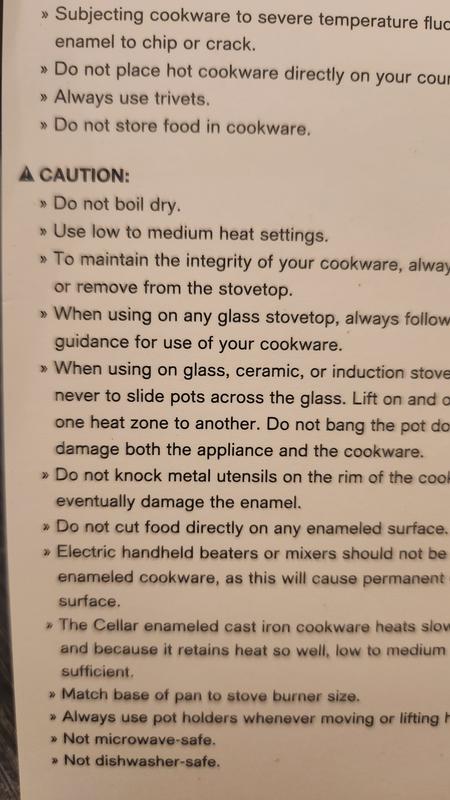 Product is a beautiful color and held the heat while I made soup. Lovely. More importantly, the Macy's salesperson was awesome.