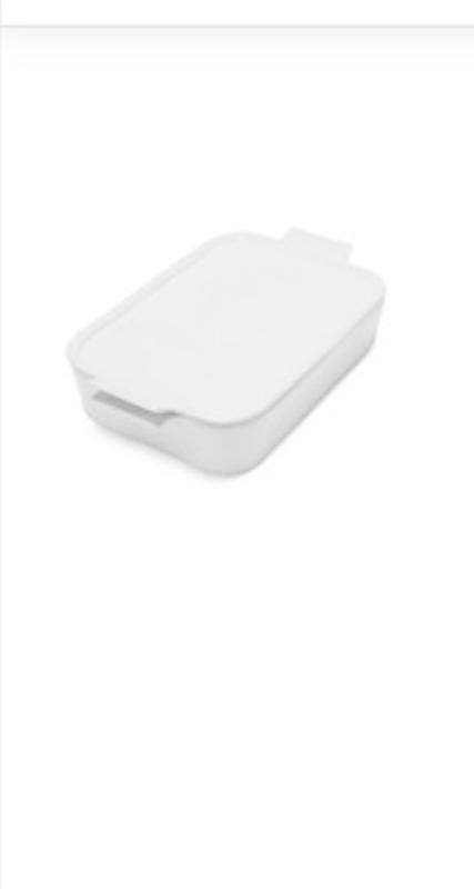 This is a 2-piece porcelain baker with lid. The baker is sized at 13.5" x 8.1" x 2.7" with the lid being 13.5" x 8.1" x 1". It is oven safe to 400°F. The lid can be used a trivet. This baker is said to be dishwasher and microwave safe. These are very useful attributes and make it more functional. The baker seems solid and sturdy. The flaw with this baker is that the lid does not sit flush. This takes away from the aesthetics. The space between the lid and baker causes it not feel secure enough to transport when full. For this reason, I would not use this container to store left over food. The top although said to double as a trivet, would not be ideal due to its large size.