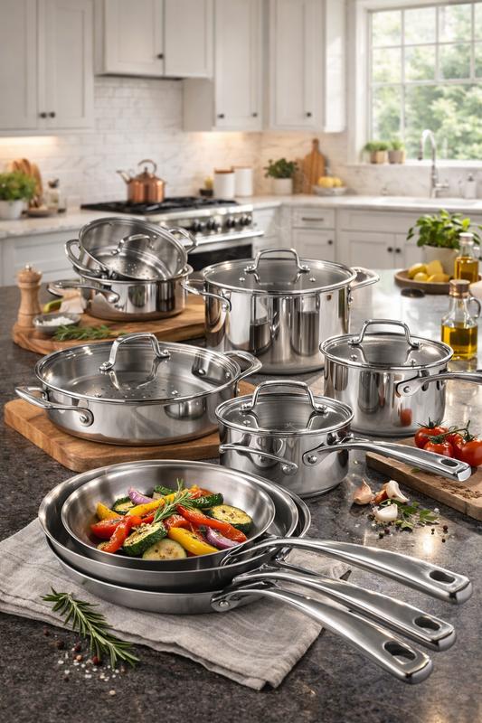 I recently received the The Cellar Stainless Steel 14-Pc. Cookware Set and overall I’m pleased with it. The set looks sleek and feels sturdy, and it includes a good variety of pots and pans for everyday cooking. Heat distribution is fairly even, and it gives a nice sear once properly preheated. I also have couple of other stainless steel cookware from Macy's, the Cellar brand is the best set i have used so far. One thing to note is that the pan can be sticky if you don’t add enough oil or don’t preheat it correctly. It definitely requires proper technique since it’s not nonstick. Overall, it’s a solid stainless steel set.
