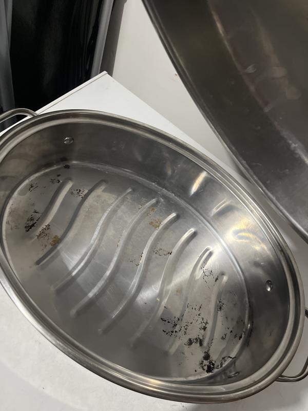 I was hopeful with my new roaster. It looks amazing. On the downside, it is way too thin. On my first use, after washing and drying, it burned the bottom. The heat was only on medium.