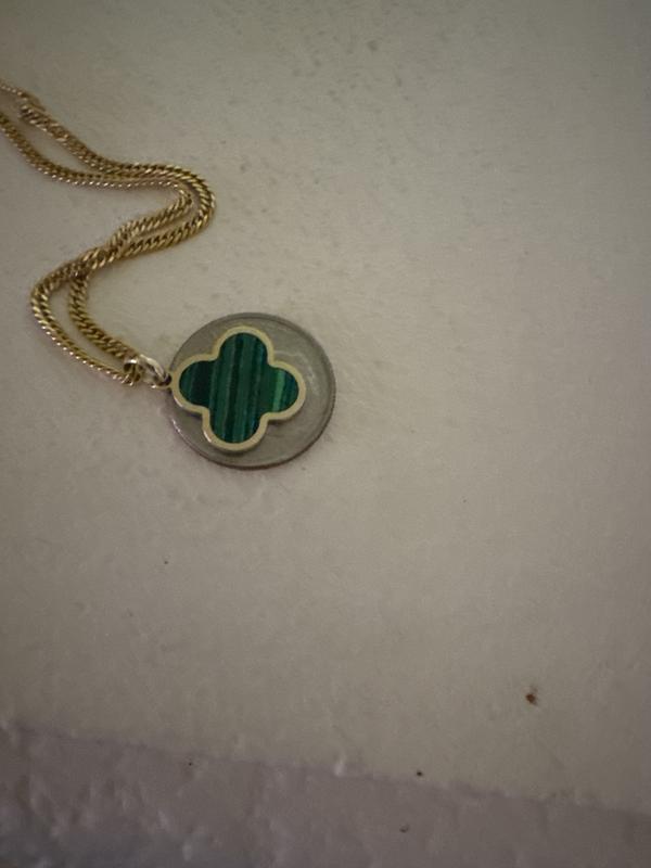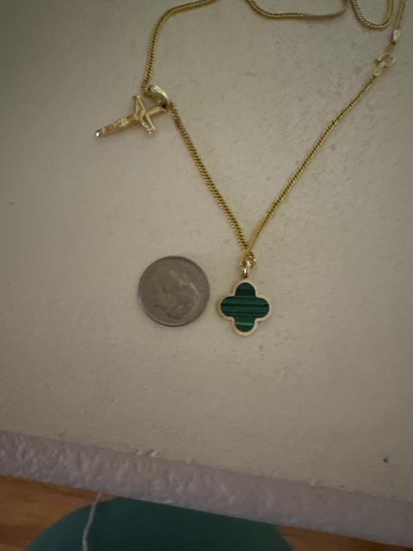 The charm everyone's been asking for! Discover your new favorite clover charm! Available in a variety of colors. 14K Yellow Gold 1 Malachite Clover. This piece is measuring 14 millimeters, 0.55 inch and is identical on both sides.