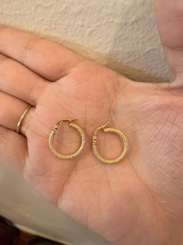 Absolutely gorgeous solid 14K Yellow Gold mesh hoop earrings. The mesh detailing gives them extra shine! I love Rose Gold though. I’m patiently waiting for the Rose Gold version to come back in stock!