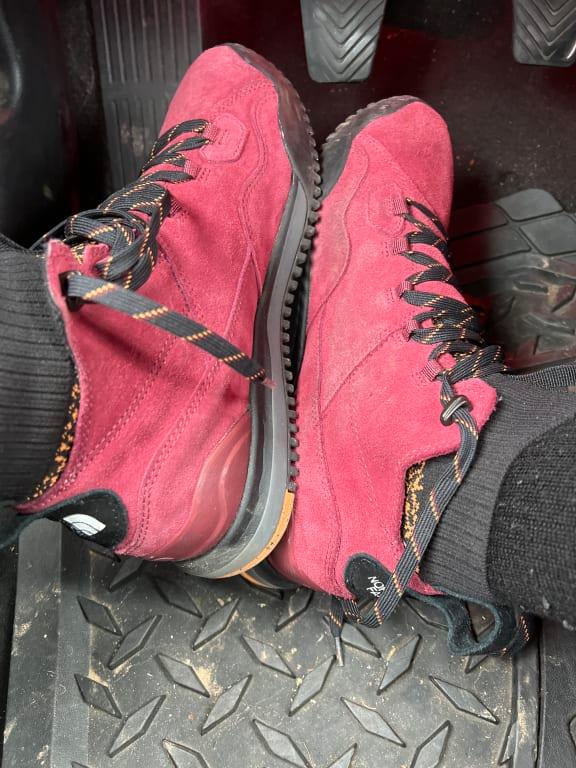 Hi! So far the boots have been really comfortable, at the beginning they run a bit narrow but after 3/4 uses they hold perfect the feet on the sides. My normal shoe size tends to be 7.5us, for sportive shoes I go 8us but for hiking boots is recommended to go bigger so I went 8.5us and they fit perfect! Therefore I recommend to go one size bigger to what you normally use, not only on this model but other north face shoes and boots too as I tried them personally at a store before. These boots are easier to get in, and off, you just have to be organized with your laces. The materials are awesome! I give them 4 stars as in the back of the feet in the inside of the left boot are some stitches getting to be annoyed on the feet if the boots are not put correctly, I think is more fabric manufacturing related than design related but I cannot return for exchange the left one as I'm overseas. Apart from that, these boots are really awesome and even steal some looks on the go, highly recommend them! I would buy them again