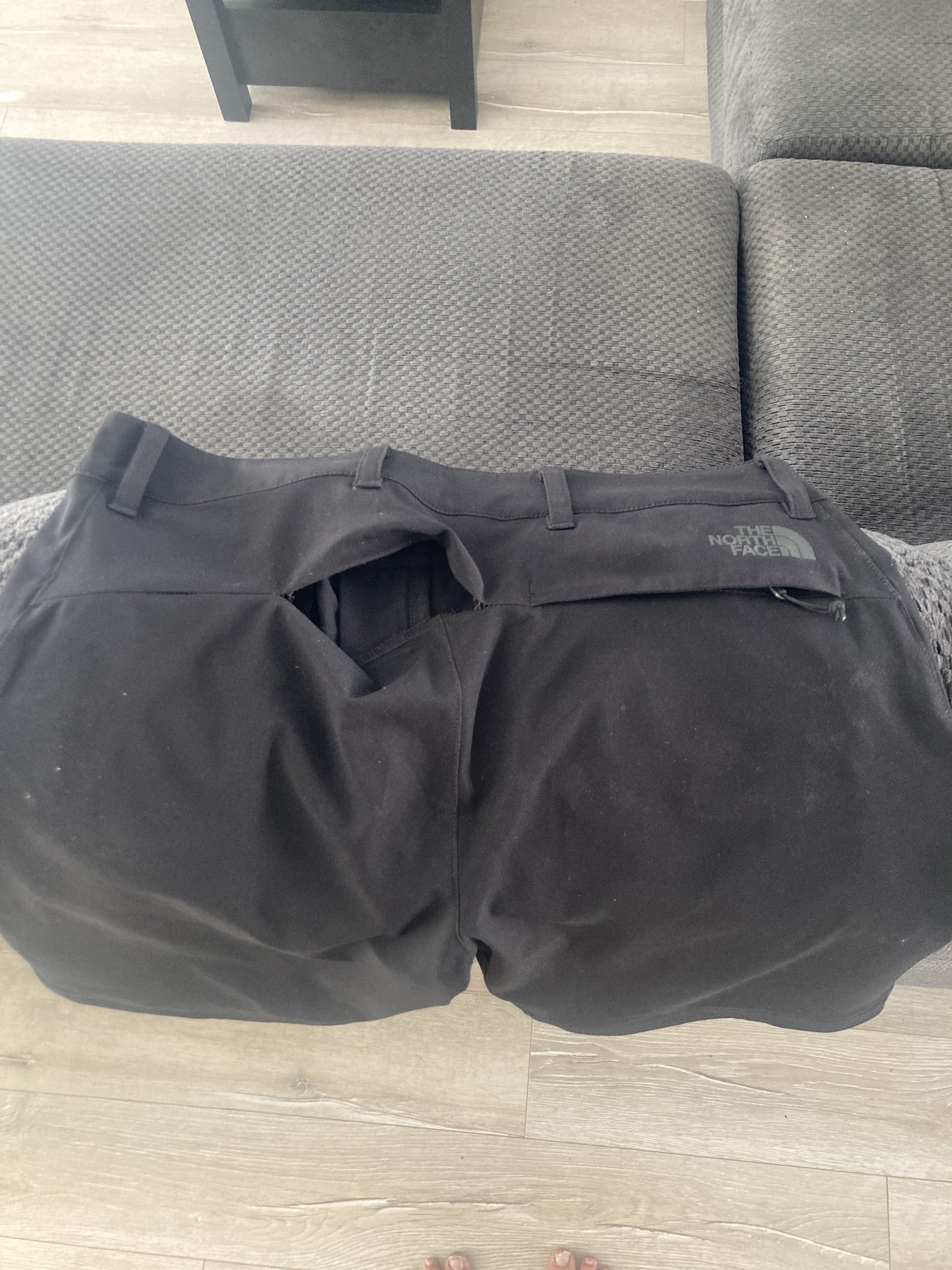 I recently bought this pair of pants—the first one I got had a small tear in the stitching, right below the zipper in the front. I returned it to the store and they gave me a new one. Unfortunately, after wearing the new pair only twice, the same issue appeared again: a tear in the same spot. Now, two months later, I've had to sew it twice already, and today I'm about to fix it for a third time. It's a shame, because The North Face is supposed to be a high-quality brand. In this case though, I'm really disappointed.