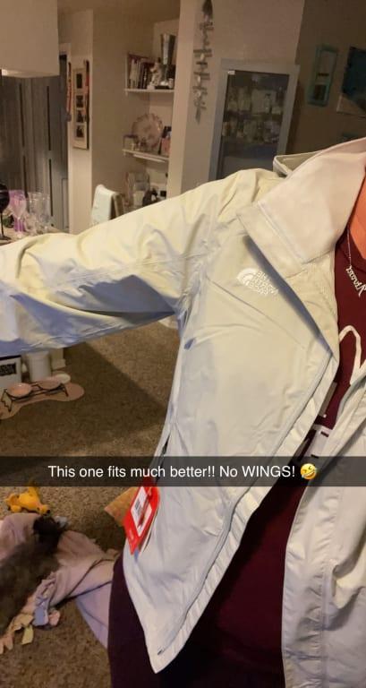 I love layering this with my other North Face when it is colder out. I love the slim fit it has instead of looking bulky. The waterproof material is a plus too!