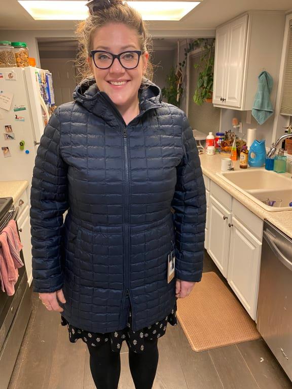 This is my first purchase from the TNF. I received today the Aviator Navy, XS Thermoball Parka. For reference, I am petite, 5'2", 110 lb, 32B size, and I wear size 2/26 pants. The Navy color is beautiful, and to me it is beautifully made, length is just above my knee, however the sleeve length is a little too long. The website description says Standard Fit, but when I received the coat, the tag says Slim Fit. The body fit is snug and thats how I wanted it. Very happy with my online purchase.