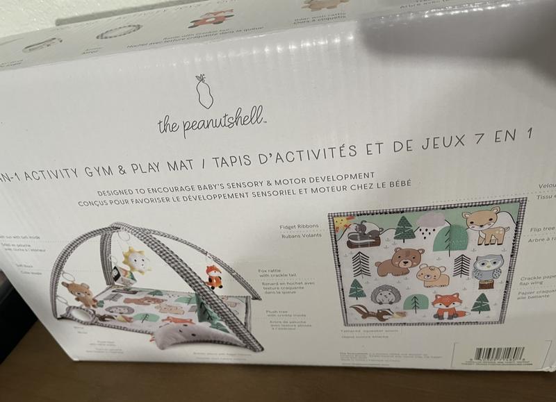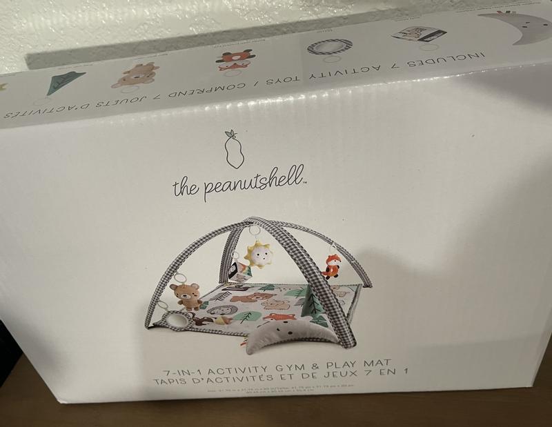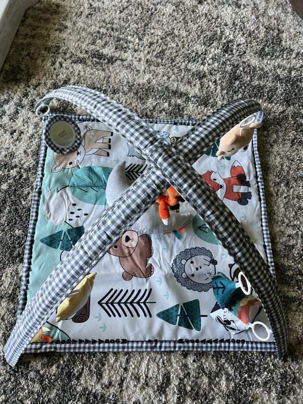 This is the most adorable playtime mat! Great for tummy time and enrichment. Soft & easy to put together. Our grandbaby loves looking and playing with all the soft woodland animals and hanging blocks , mirror, and sun. Black & white checkered arch is great first observation focal point. Simply adorable! She loves it and always is happy while playing with it!