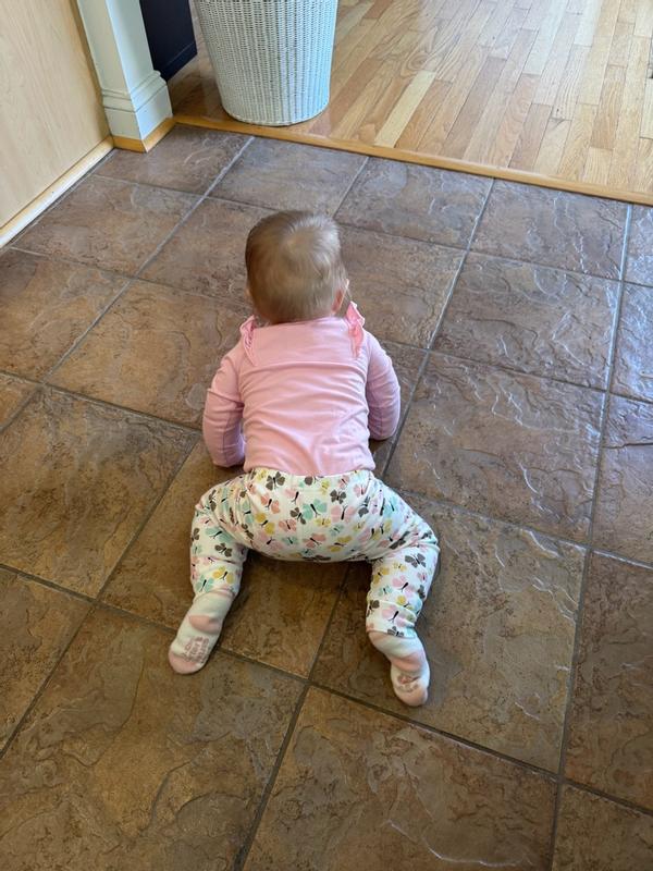 These are lightweight and very comfortable and soft. I ordered the size 12 months for my 10 month old. My little honey has thick legs so some pants can be quite tight for her, but these have plenty of room (you can see the gap at her ankle). They’re easy to get on and off for quick changes. I love the color options that come with it, versatile and muted tones. I’m also really happy that they’re made from cotton, and not a synthetic fabric.
