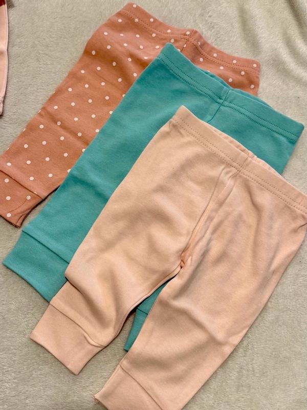 Great set! I love how colorful the outfits are and the number of pieces in the set. My babe is 11 weeks and weighs about 13 lbs. the outfits fit perfectly! I really like the versatility with the pants. Since they’re not completely patterned, I could easily mix and match for other outfits. My only complaint is that the material isn’t very soft, but it’s certainly not uncomfortable by any means. I would definitely recommend this set. It would make a great baby shower gift!