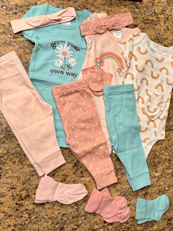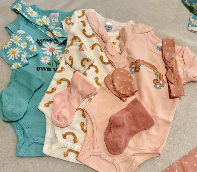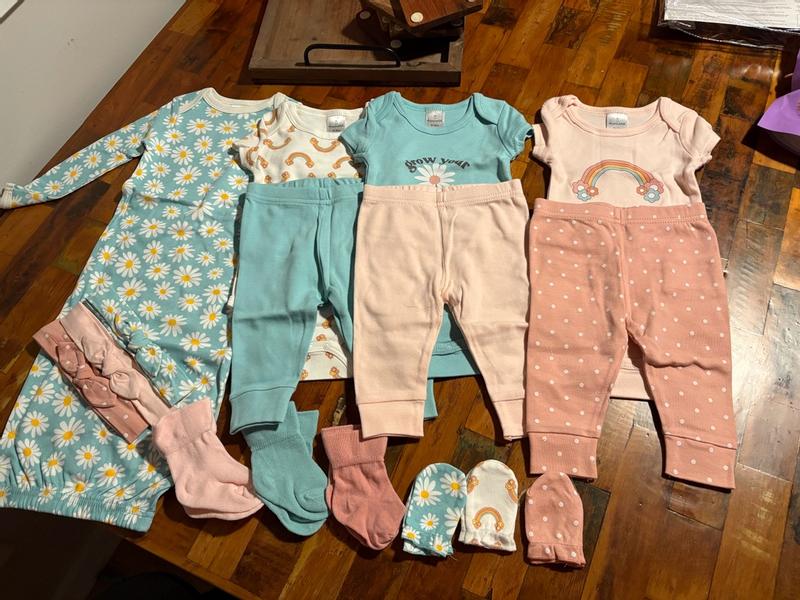 Absolutely love this whole set! My daughter looked so cute in the bows and matching mittens set. True to size and love the sleeper! Lots of colorful pieces and comfy clothing would definitely purchase again