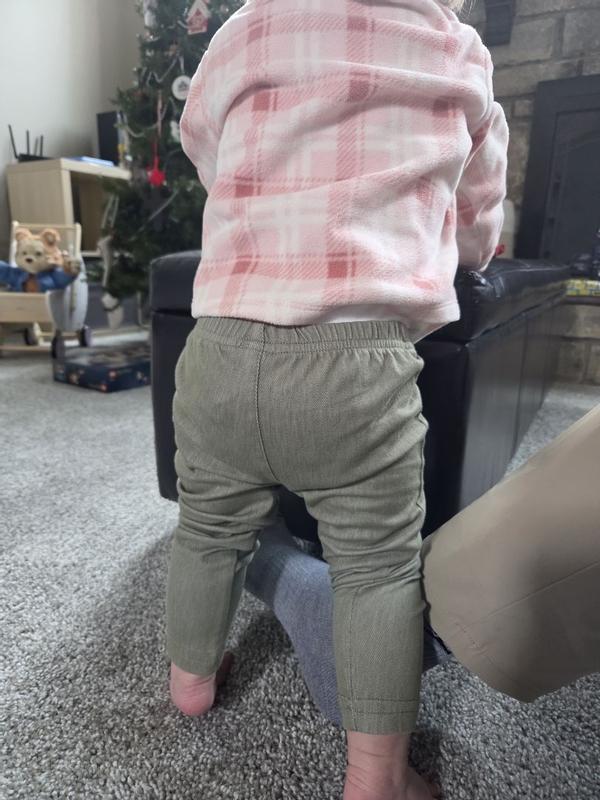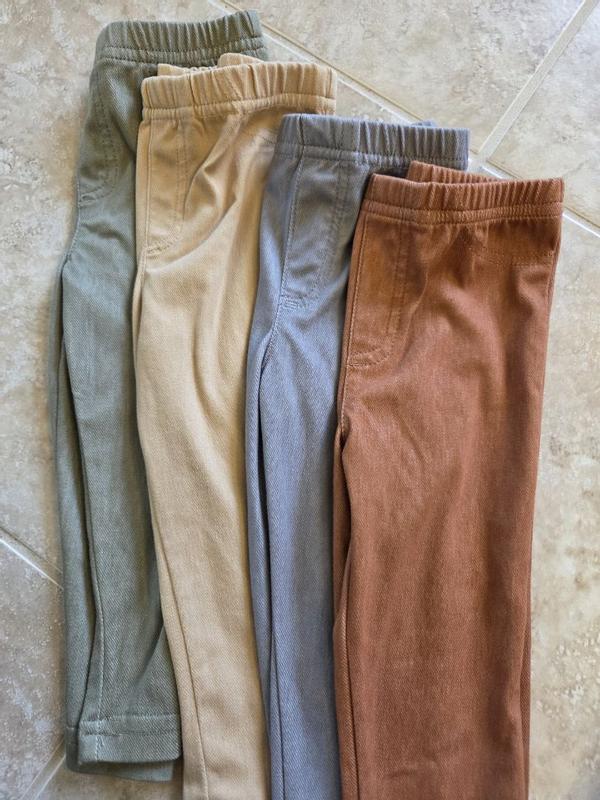 Such cute colors for fall! They feel very soft and stretchy which is great for a moving baby. They're a little on the thin side, so probably best to wear on warmer days, but overall the quality of these pants looks great!
